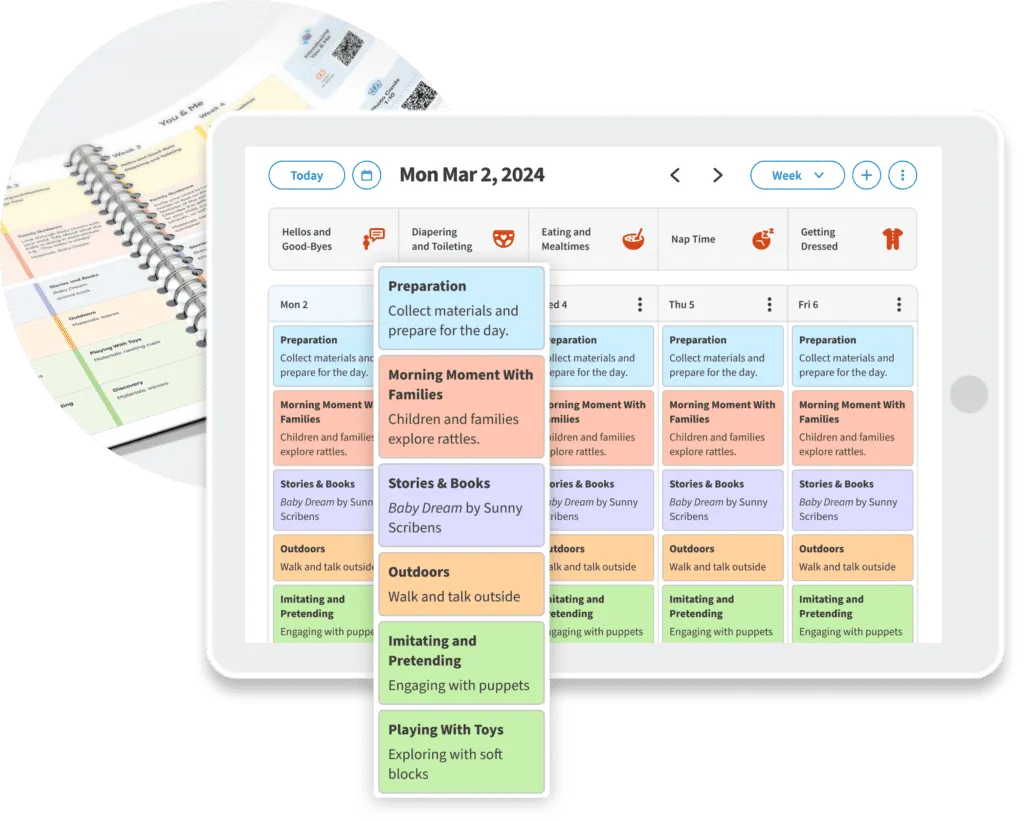 Pre-populated weekly plans and care routines save teachers time.