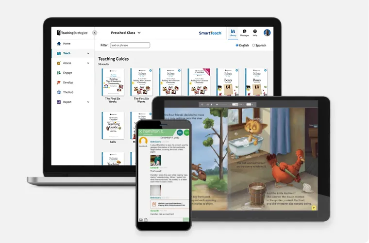 Streamline planning, teaching, and family engagement anywhere, anytime, with 24/7 access to the full library of curriculum resources, in both English and Spanish; engaging, multimedia family-friendly playlists tied directly to classroom instruction; a Digital Children’s Library; and two-way communication with families.