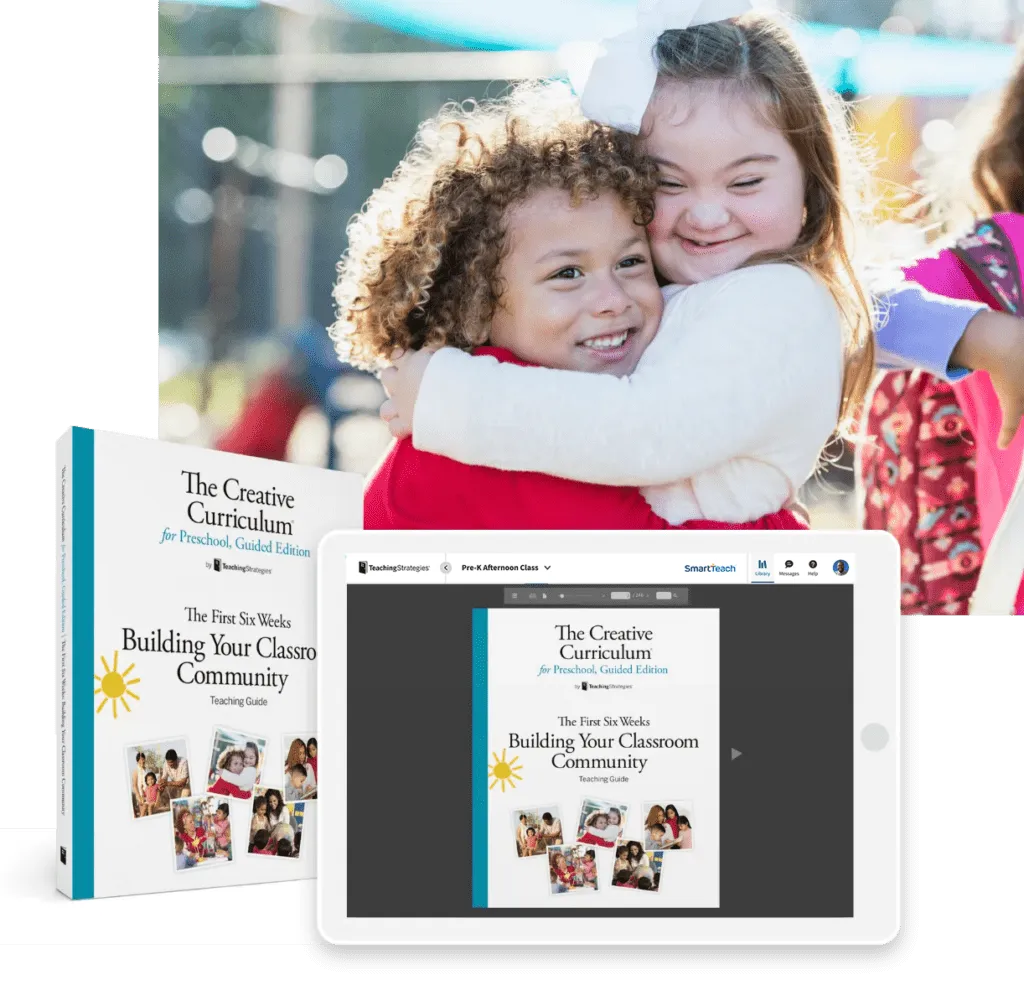 The curriculum also includes a Teaching Guide titled The First Six Weeks: Building Your Classroom Community, a powerful resource that prepares educators to connect with children and their families at the beginning of the school year and build a solid foundation for all the learning that is to come during the rest of the year. Teachers receive guidance for creating an inclusive classroom community that intentionally sends positive messages to help all children and families feel welcomed, valued, included, safe, and competent.