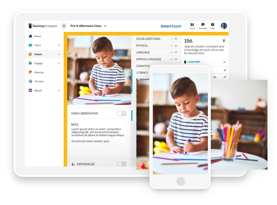 Amplify the power of The Creative Curriculum for Preschool by adding GOLD formative assessment. Capture observations in the moment and automatically connect assessment data to daily instructional resources, creating an instantaneous feedback loop for the teacher to effectively and easily individualize learning for each child.